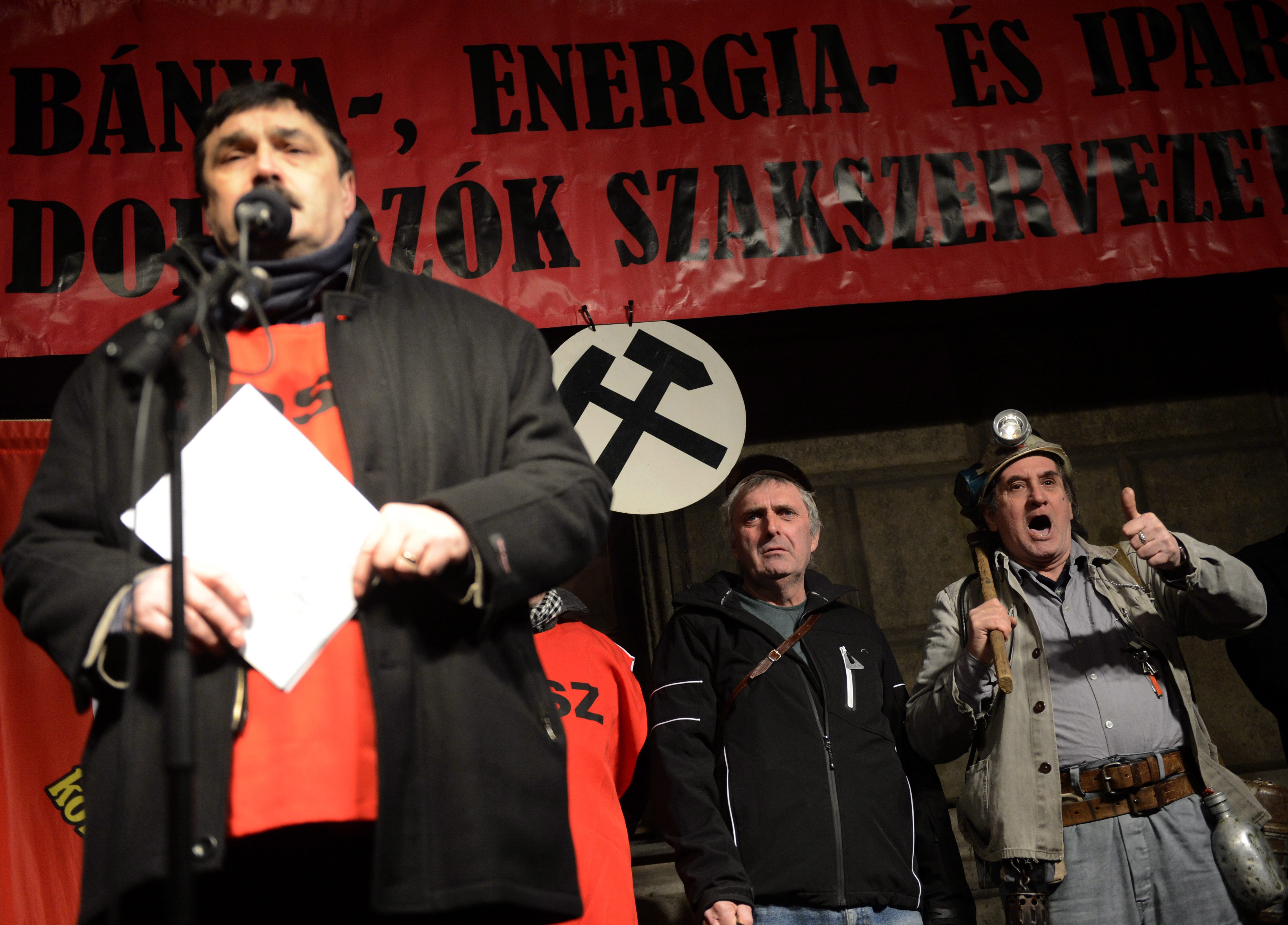 Ha a kormány egy tollvonással elvehette a bányászoktól a jogos járandóságukat, akkor senki ne áltassa magát abban a hitben, hogy ő biztonságban van. A kormány nem látja a jogszabályok betűi mögött az embereket – mondta Pataky Péter, a Magyar Szakszervezeti Szövetség elnöke a bányász szakszervezet demonstrációján. Rabi Ferenc, a BRDSZ elnöke a színpadról meghívta Orbán Viktort egy bányába, hogy személyesen győződjön meg annak egészségkárosító hatásairól.